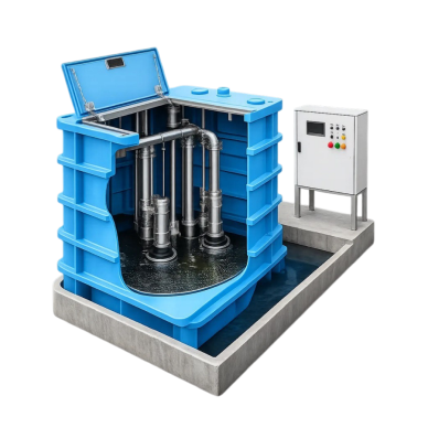 Basat Pro изготавливает КНС в корпусе из стеклопластика или полиэтилена и выполняет внедрение «под ключ». Такие материалы устойчивы к коррозии и агрессивным средам, обеспечивают герметичность и долгий срок службы. Низкий вес по сравнению с металлом упрощает транспортировку и монтаж, а также снижает требования к спецтехнике на площадке. Мы подбираем конструкцию и комплектацию под реальные условия: характеристики стоков, гидравлику напорной линии, глубину установки и требования по обслуживанию.